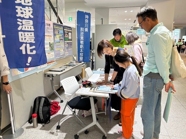 ふじさわ環境フェアEco2まつりに出展しました 2025/12/03 11月15日に開催された環境フェアは、環境保全や地球温暖化防止をテーマにしたイベントです。多くの方が当センターのブースに立ち寄られ、楽しみながら環境についての話をしていかれました。「こどもデコかつチャレンジ10!」にもご記入いただきました。