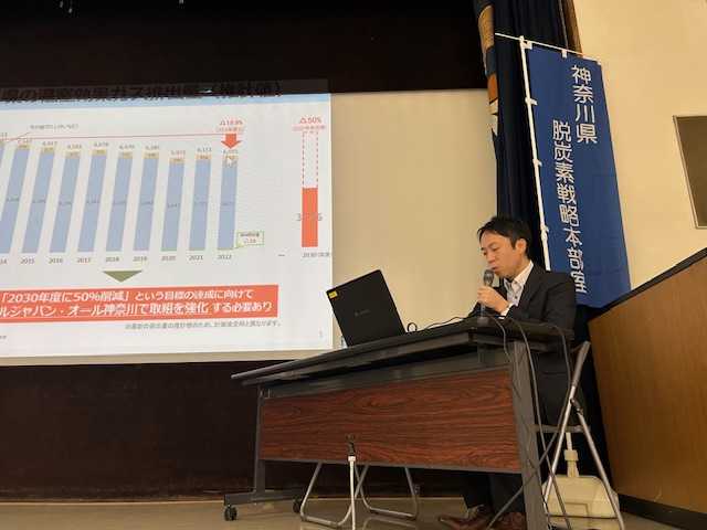 神奈川県の脱炭素方針と戦略と推進員の活動事例の報告がありました。